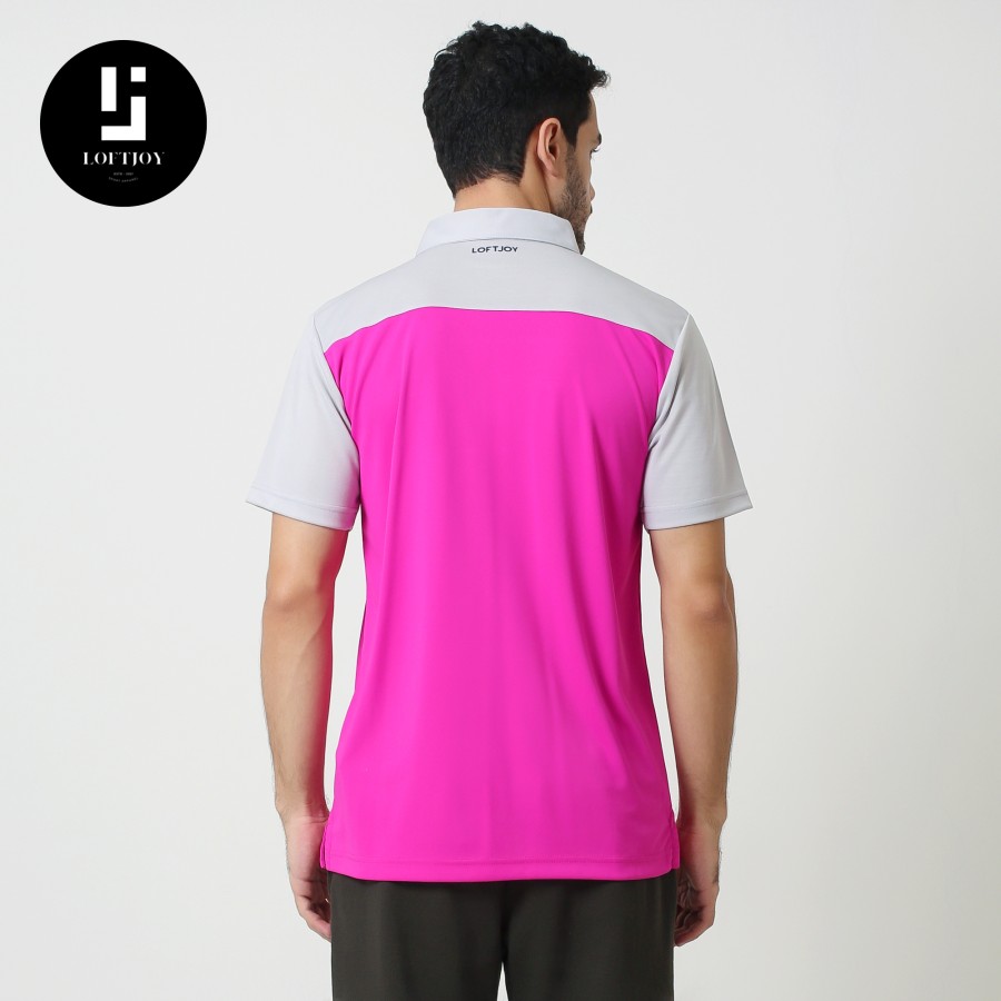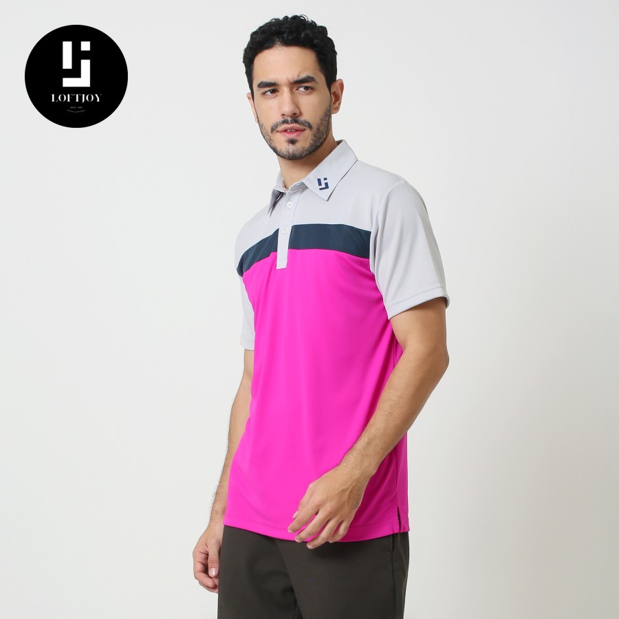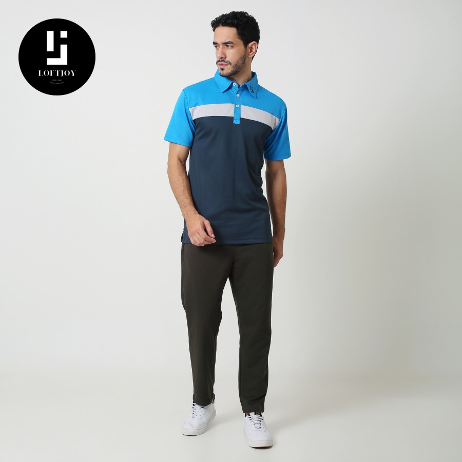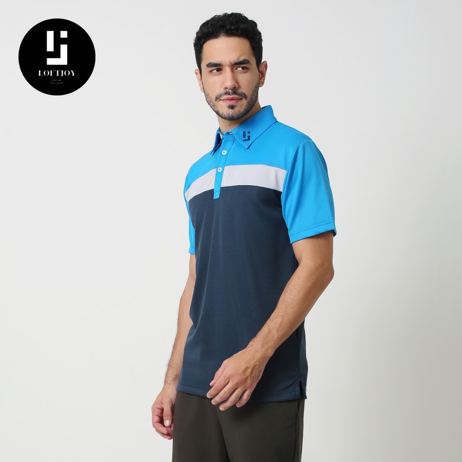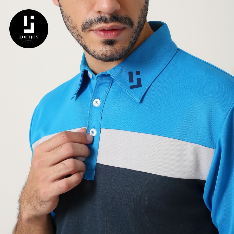 • Logo Placement: The Loftjoy logo is embroidered on the left side of the collar with a color that matches the color scheme of the shirt.